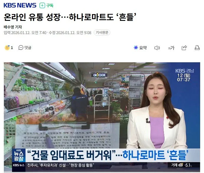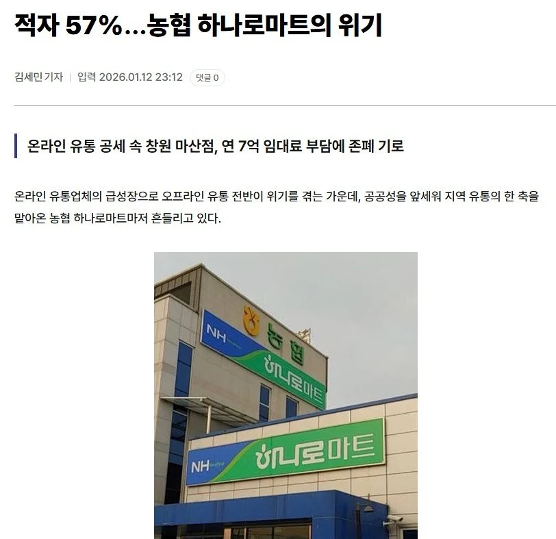 정작 그 하나로마트도 엄청난 적자로 신음하고 있음